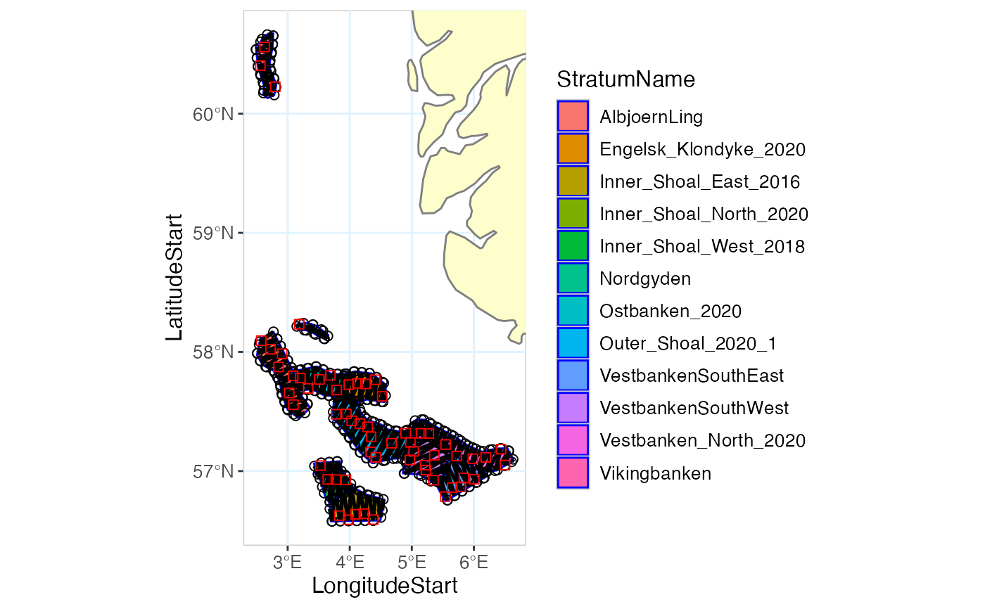 #> StoX: TransectDesign for Stratum Vikingbanken...